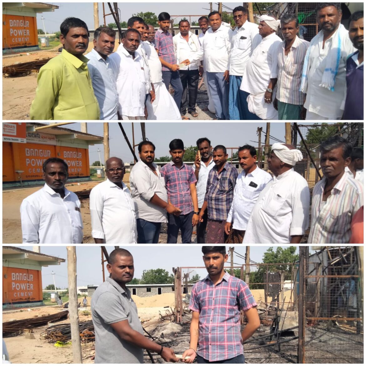 - మే31( తెలంగాణ ఎక్స ప్రెస్) నర్వ మండల కేంద్రంలోని ఏపీజీవీ బ్యాంకు ఎదురుగా లంకాల్ గ్రామ నివాసి అగు చాకలి అనిల్ కుమార్ గత ఆరు నెలల క్రితం గుడిసెను నిర్మించుకొని దాంట్లో టీ కొట్టు పెట్టుకొని జీవనం కొనసాగిస్తున్నాడు అనుకోకుండా మధ్యరాత్రిలో ఈదురు గాలుల వల్ల గుడిసెలో షార్ట్ సర్క్యూట్ అయినందున గుడిసె మొత్తం దగ్దమైనందున చాకలి అనిల్ కుమార్ చాలా ఆవేదన లోనైనందున మండల కేంద్రంలోని దయా హృదయులు నర్వ మండల బి ఆర్ ఎస్ పార్టీ దళిత నాయకుడు దండు అయ్యప్ప తన వంతుగా 10,000/- రూపాయలను ఆర్థిక సహాయంగా అందజేసి ఆయన దాతృత్వాన్ని చాటుకున్నారు.అదేవిధంగా నర్వ మండల పరిధిలోని లంకాల్ గ్రామానికి చెందిన బిఆర్ఎస్ పార్టీ యువ నాయకుడు శ్రీకాంత్ రెడ్డి 10,000/- రూపాయలను తన వంతు ఆర్థిక సహాయంగా అందజేశారు.మండల కేంద్రానికి చెందిన కిరాణా షాప్ యజమాని కోమటి నరేష్ తనవంతు ఆర్థిక సహాయంగా పదివేల రూపాయలను అందజేశారు.*